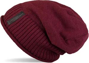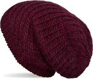 Unisex Strick Beanie Mütze grob gestrickt, Slouch Longbeanie, Grobstick Winter Strickmütze 04024158, Farbe:Bordeaux-Rot