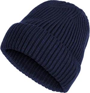 Unisex Feinstrick Beanie Mütze mit Krempe, warme Winter Strickmütze Einfarbig, Rippen Strickmuster 04024154, Farbe:Dunkelblau