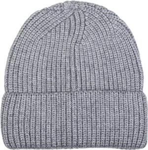 Unisex Feinstrick Beanie Mütze mit Krempe, warme Winter Strickmütze Einfarbig, Rippen Strickmuster 04024154, Farbe:Hellgrau