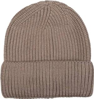Unisex Feinstrick Beanie Mütze mit Krempe, warme Winter Strickmütze Einfarbig, Rippen Strickmuster 04024154, Farbe:Taupe