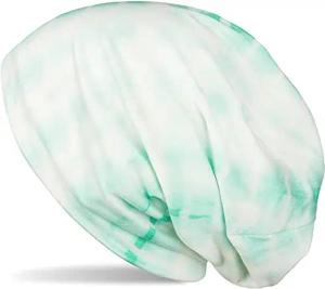 Unisex Stoff Beanie Mütze mit Batik Streifen Muster Print, Leichte Longbeanie mit Farbverlauf 04024187, Farbe:Mint-Weiß