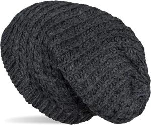 Unisex Strick Beanie Mütze grob gestrickt, Slouch Longbeanie, Grobstick Winter Strickmütze 04024158, Farbe:Dunkelgrau
