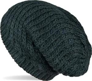 Unisex Strick Beanie Mütze grob gestrickt, Slouch Longbeanie, Grobstick Winter Strickmütze 04024158, Farbe:Dunkelgrün