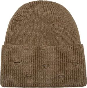 Damen Beanie Mütze mit Strass-Nieten Applikation und Rollrand, warm 04024024, Farbe:Braun