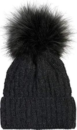 Zopfmuster Bommelmütze, Strickmütze mit Fellbommel, Winter Beanie Mütze, Unisex 04024064, Farbe:Grau