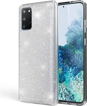 Glitzerhülle für Samsung Galaxy S20 FE - Funkelnder Glitzer-Look & Grip - SHINEPOP (Silikon Case) - Marke aus Berlin, Farbe:Silber