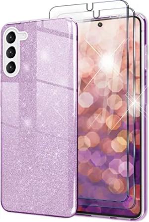 Glitzerhülle für Samsung Galaxy S22 - Funkelnder Glitzer-Look & Grip - SHINEPOP (Silikon Case) - Marke aus Berlin, Farbe:Lila