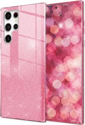 Glitzerhülle für Samsung Galaxy S24 Ultra - Funkelnder Glitzer-Look & Grip - SHINEPOP (Silikon Case) - Marke aus Berlin, Farbe:Pink