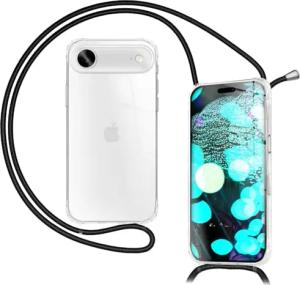 Handykette für iPhone 17 Air - Transparentes Hybrid-Case & Band - HANGIT PRO (Anti-Gelb Rückseite & Verstellbar) - Marke aus Berlin, Farbe:Mitternacht Schwarz