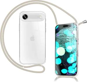 Handykette für iPhone 17 Air - Transparentes Hybrid-Case & Band - HANGIT PRO (Anti-Gelb Rückseite & Verstellbar) - Marke aus Berlin, Farbe:Sandstein Beige