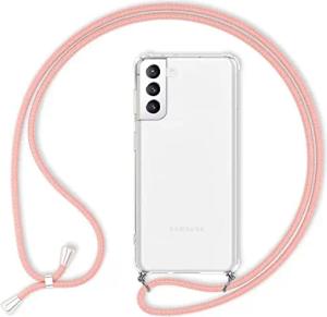 Handykette für Samsung Galaxy S22 - Transparentes Hybrid-Case & Band - HANGIT (Anti-Gelb Rückseite & Verstellbar) - Marke aus Berlin, Farbe:Pink