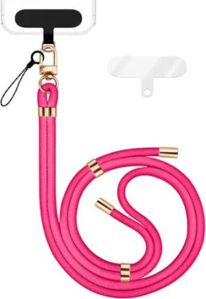 Universal Handykette für alle Smartphones - Premium Komfort-Nylon & 2 Patches - HOLDME (Geflochtenes Lanyard mit Gold-Karabiner) - Marke aus Berlin, Farbe:Neon Pink