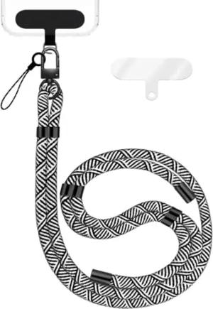 Universal Handykette für alle Smartphones - Premium Komfort-Nylon & 2 Patches - HOLDME (Geflochtenes Lanyard mit Mattschwarzem Karabiner) - Marke aus Berlin, Farbe:Schwarz Weiß