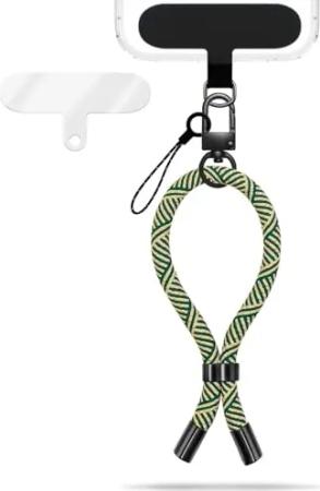 Universal Handykette für alle Smartphones - Premium Komfort-Nylon & 2 Patches - HOLDME (Geflochtenes Lanyard mit Silber-Karabiner) - Marke aus Berlin, Farbe:Grün Weiß