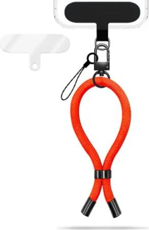 Universal Handykette Kurz & Kamera-Band - WRISTY (Verstellbare Handgelenkschlaufe inkl. 2 Patches & Feinschlaufe) - Marke aus Berlin, Farbe:Orange Energy