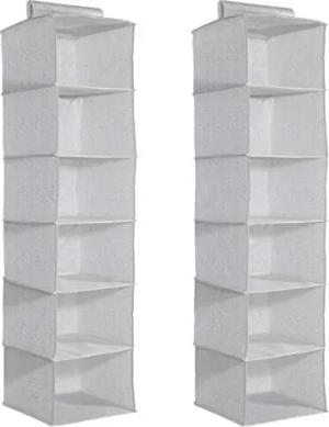 2er Set Stoffregal Kleiderschrank Organizer - 2X 6 Fächer Hängeregal aus Stoff für Kleiderschrank - 30x30x126cm Hängeaufbewahrung in Grau