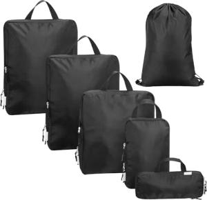 6er Set Kompressions Packwürfel - Koffer Organizer Kompression - Packtaschen für Rucksack - Leichtgewichtig und Wasserabweisend - Kompressionsbeutel Reise - Schwarz
