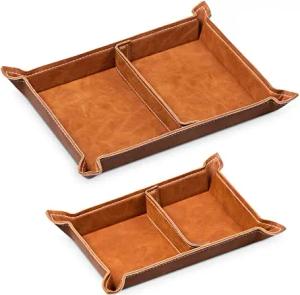 Lederschale Tablett aus Kunstleder - 2x Schale Ablage Leder - Ablageschale für Schmuck Schlüssel Münzen Handy - Uhrenablage Schlüsselablage Organizer - braun