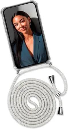 Handykette für Samsung Galaxy S21 Hülle mit Band, Handyhülle mit Kette abnehmbar, Handyband zum Umhängen, Handy Umhängeband Lange Handykordel, Twist Case – Weiß Silber