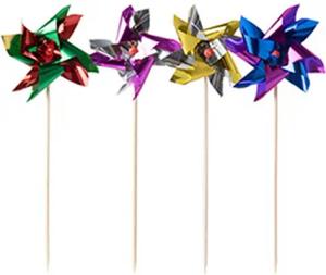 Deko-Picker / Partyspieße "Windmühle" (100 Stück) 17.5 cm, farbig sortiert, aus Holz und Aluminium, für Eisbecher, Cocktails, Kindergeburtstage, Partydeko, #16688