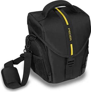 Kameratasche Essex für Spiegelreflexkamera DSLR SLR Fototasche für DLSM Systemkamera Objektive und Zubehör mit Regenschutzhülle, Gr. L gelb