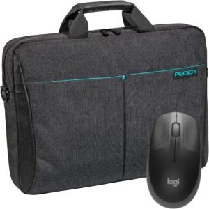 Laptoptasche 15,6 Zoll BLACKLINE + CHERRY MC 1000 Maus Notebook Umhängetasche mit Schultergurt, schwarz
