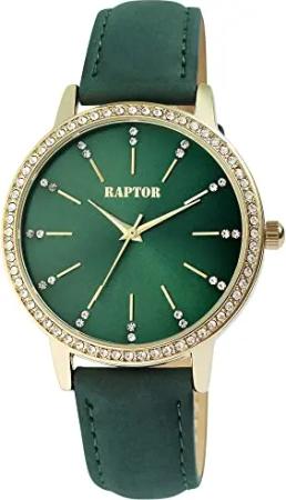 Brilliance Damen-Uhr Echt Leder Armband Strass Glitzer Elegant Analog Quarz RA10176 (grün goldfarbig)