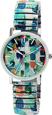Colorful Edition Damen-Uhr mit Edelstahl Zugarmband Ø36mm Bunte Armbanduhr analog Stretch Geschenke für Frauen