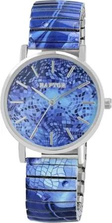 Colorful Edition Damen-Uhr Zugband Edelstahl Motiv Bunt Print Analog Quarz (hellblau/dunkelblau)
