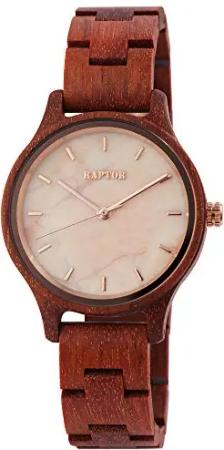 Damen-Holzuhr Edelstahl Faltschließe Natur Analig Quarz RA10209 (Padoukwood)