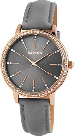 Damen-Uhr Echt Leder Armband Glitzer Elegant Analog Quarz RA10175 (grau/roségoldfarbig)