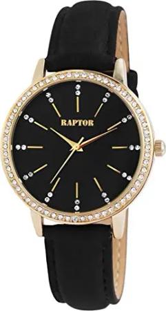 Damen-Uhr Echt Leder Armband Strass Glitzer Elegant Analog Quarz RA10176 (schwarz/goldfarbig)