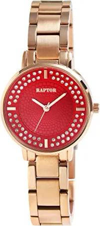 Damen-Uhr Nahida Edelstahl Faltschließe Similistein Analog Quarz RA10223 (roségoldfarbig rot)