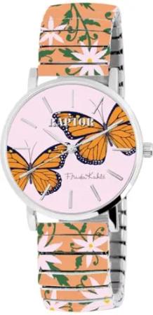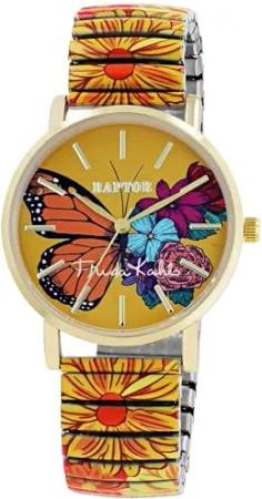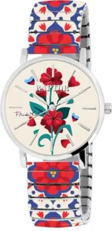 Damenarmbanduhr Frida Kahlo Edition mit Zugband (Mehrfarbig - stilisierte Blumen mit Schmetterlinge)