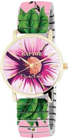 Damenarmbanduhr Frida Kahlo Edition mit Zugband (Mehrfarbig - Pink mit Gänseblümchen)
