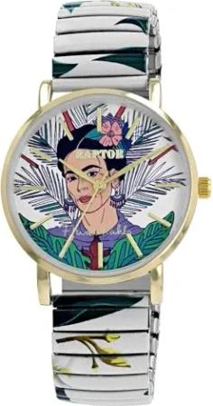 Damenarmbanduhr Frida Kahlo Edition mit Zugband (Mehrfarbig - Orange mit Blumen)