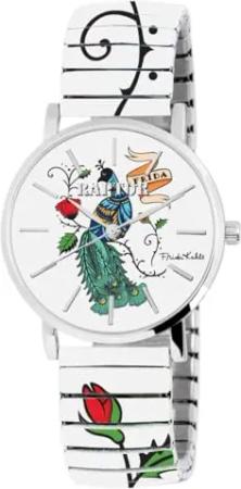 Damenarmbanduhr Frida Kahlo Edition mit Zugband (Mehrfarbig - Weiß mit Rosen)