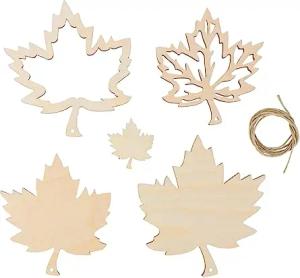 Holz-Anhänger Blatt, 3,8 + 8,8 + 10,4 cm ø, mit Kordel, Btl. 5 Stück, naturbelassen, FSC zertifiziert
