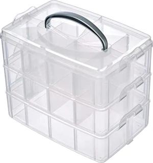 Sortierbox Aufbewahrung mit Griff,Transparent, groß, 23.1 x 18.5 x 15.6 cm,3 Etagen m. 17 Fächern,für Bastel-Material,Spielzeug, Büro-Utensilien,Accessoires–übersichtlich,stabil (39320000)