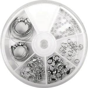 Starterset Schmuckzubehör, silber, Schmuckherstellung Set, Schmuck Reparatur Set, Schmuck basteln, Starter Kit mit Schmuckdraht, Karabinerverschlüssen, Ringeln, Quetschperlen, 2248517