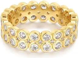 Damen Ring CHIC Creator Double Row Bezel aus 925 Sterling Silber 14k vergoldet, besetzt mit 60 Zirkonia, EUR Größe: 56, inkl. Geschenkverpackung