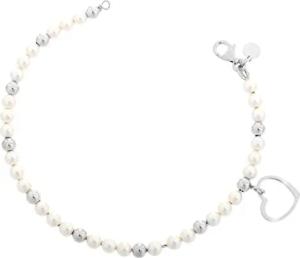 Damen-Armband 925 Silber rhodiniert Kristall Herzschliff Synthetische Perle Weiß 19 cm - ZA-1813