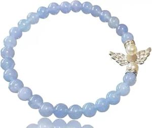 - Aquamarin Perlenarmband 6mm mit Schutzengelchen und versilberten Trennern - Hochwertiges Edelsteinarmband handgefertigt inclusive edler Geschenkbox