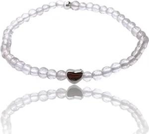 Bergkristall Edelstein Armband mit 925 Silberperle und versilbertem Herzchen inclusive edler Geschenkbox - Perlenarmband (Perlen 4 mm)