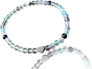- Echtes Fluorit Perlenarmband mit 925 Silberperle und silbernem Herz - Hochwertiges Edelsteinarmband - handgefertigt in Deutschland - Stoffwechsel - incl. Geschenkbox (Perlen 6 mm)