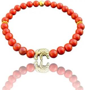 - Echtes Jaspis Perlenarmband Elefant mit vergoldeter Perle - Hochwertiges Edelsteinarmband handgefertigt in Deutschland - inklusive Geschenkbox