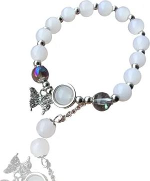 - Echtes Perlenarmband 4mm mit Schildkröte - Türkis, rotes Tigerauge, blauer Achat, Shoushan Stone oder Selenit - handgefertigt in Deutschland - inkl. Geschenkbox (Selenit)