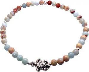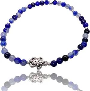 - Echtes Perlenarmband 4mm mit Schildkröte - Türkis, rotes Tigerauge, blauer Achat, Shoushan Stone oder Selenit - handgefertigt in Deutschland - inkl. Geschenkbox (blauer Achat)