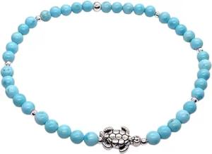 - Echtes Perlenarmband 4mm mit Schildkröte - Türkis, rotes Tigerauge, blauer Achat, Shoushan Stone oder Selenit - handgefertigt in Deutschland - inkl. Geschenkbox (Türkis)