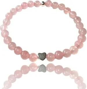 - Echtes Rosenquarz Perlenarmband mit 925 Silberperle und versilbertem Herz - Hochwertiges Edelsteinarmband handgefertigt in Bayern (medium 6 mm)